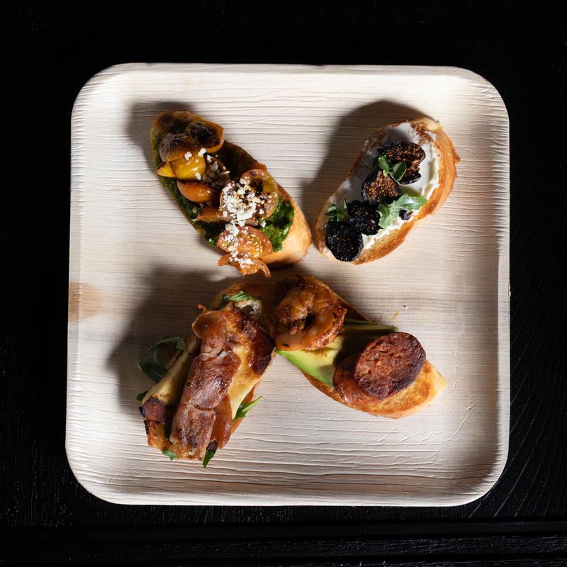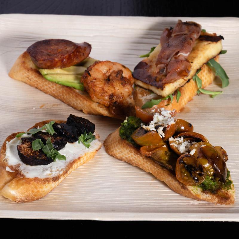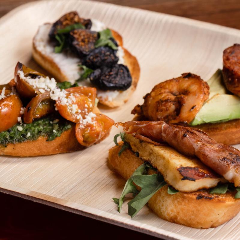 Genoa salami, spicy capicola, muenster, havarti, bleu, honey goat cheese, wasabi almonds, marinated olives, pretzel bites, fruit. Served with grilled crostini.